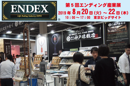 | 東京ビッグサイトで開催される「第3回エンディング産業展」に出展いたします。 葬儀、埋葬、供養などの”終活”に関わる業界の総合展示会ENDEXに今回3度目となる出展となります。 なかなか見ることができない逸品、売れ筋の定番品、新製品やサービスなどを多数ご用意して皆さまのご来場をお待ちしております。 この機会にぜひ弊社製品をご覧下さい。 |