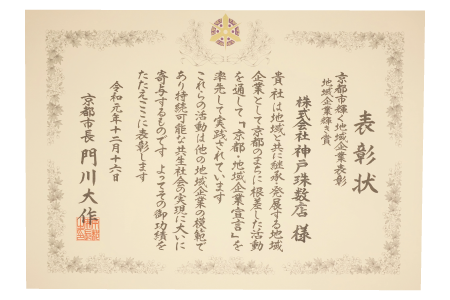 | この度弊社は、京都市より「これからの1000年を紡ぐ企業認定」に認定されました。 「これからの1000年を紡ぐ企業認定」とは、社会的課題の解決に向けた取組の実践や社会的インパクトを生み出そうとする事業者を認定し、成長と発展をサポートする制度です。 今回新たに28事業者が認定され、素晴らしい取組をされている事業者様とともに、弊社も光栄にも認定していただきました。 私たちは、数珠を通して多くの人の心を豊かにすることを掲げ、環境問題や墓じまい問題の解決に寄与する、時代に即した新商品の継続的な開発に取り組んでおります。 また、数珠の伝統を守りながら新しいことへの挑戦を続け、日本国内だけでなく世界に向けて、京都・日本の物作りの素晴らしさを伝えていきたいと考えています。 今回の認定を機に今まで以上に努力してまいりますので、ご指導ご鞭撻のほどよろしくお願いいたします。 「これからの1000年を紡ぐ企業認定」の詳細はこちら |