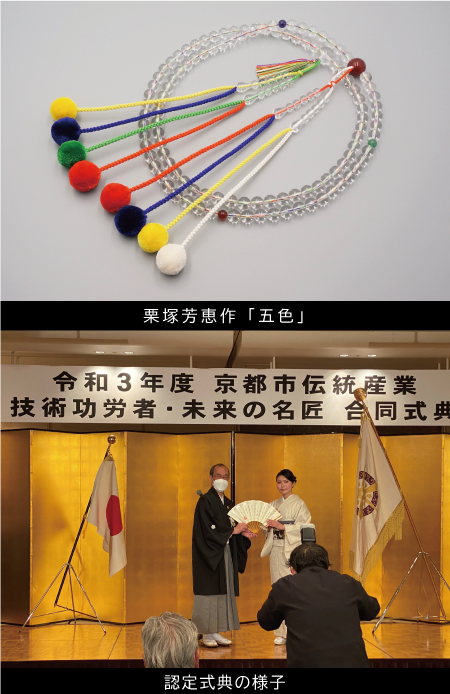 | 「大阪・関西万博」で行われる「饗宴!匠が演じる日本美の世界」において、弊社の京念珠製造師 栗塚芳恵の作品(片手念珠「MU」・創作念珠「蓮池」)が展示されます。 このイベントは、全国各地・地域に根差した伝統の技を継承する職人、工芸家、クリエーターたちの作品が集められ、日本が世界に誇る「匠」たちの〝技〟と〝感性〟を紹介するものです。 【期間】2025年5月27日(火)~6月1日(日) 【時間】10:00-19:00(最終日は16:00まで) 【会場】大阪・関西万博会場内 ギャラリーEAST 詳細はこちら |