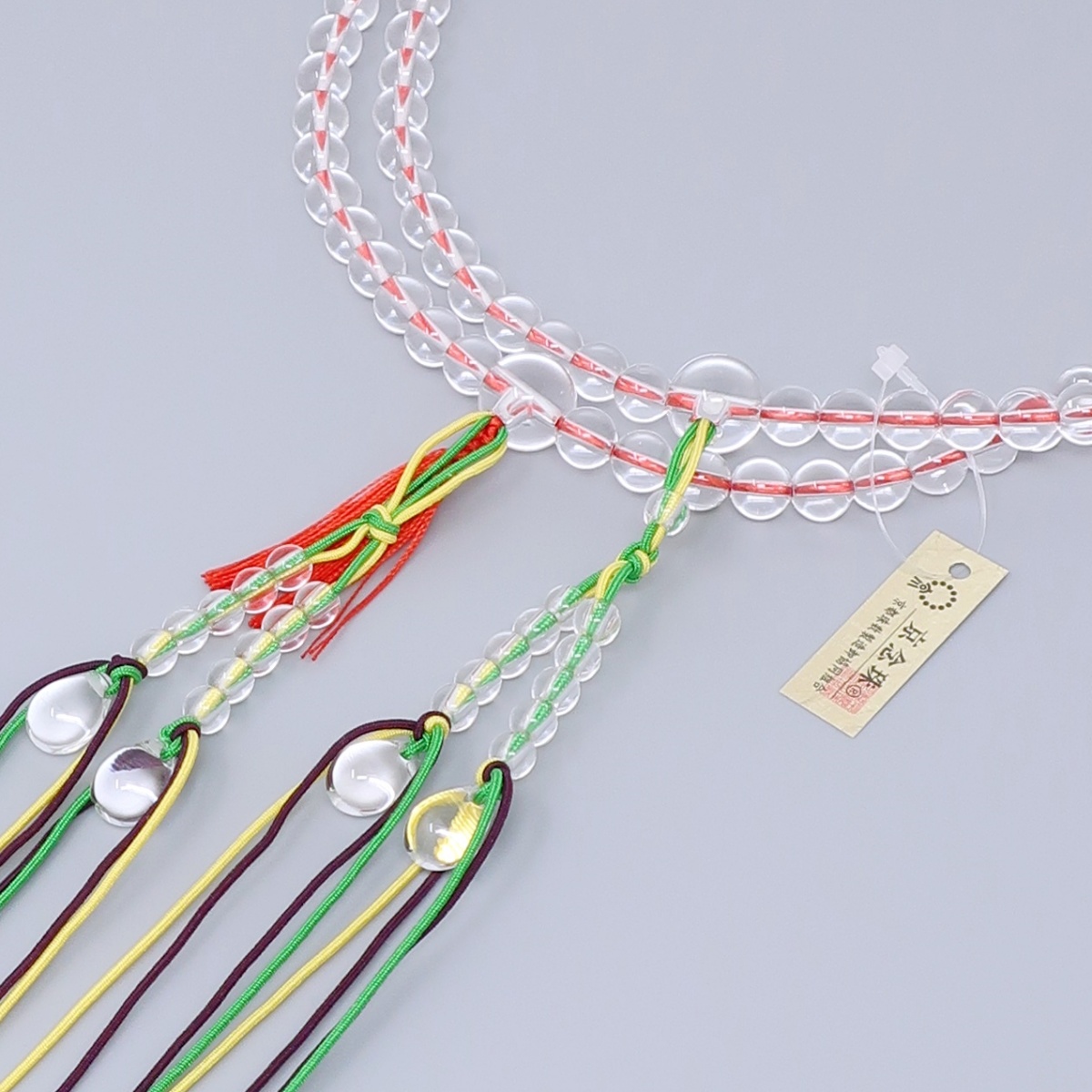 弘法大師空海が日本に帰る際、恵果和尚より授かった三色房付水晶数珠を再現した数珠です。