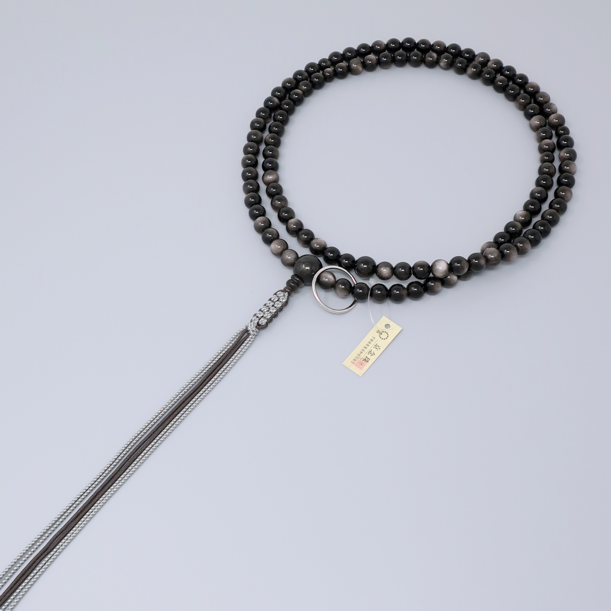 落着いた輝きがフォーマルな印象の銀曜石を使用しました。