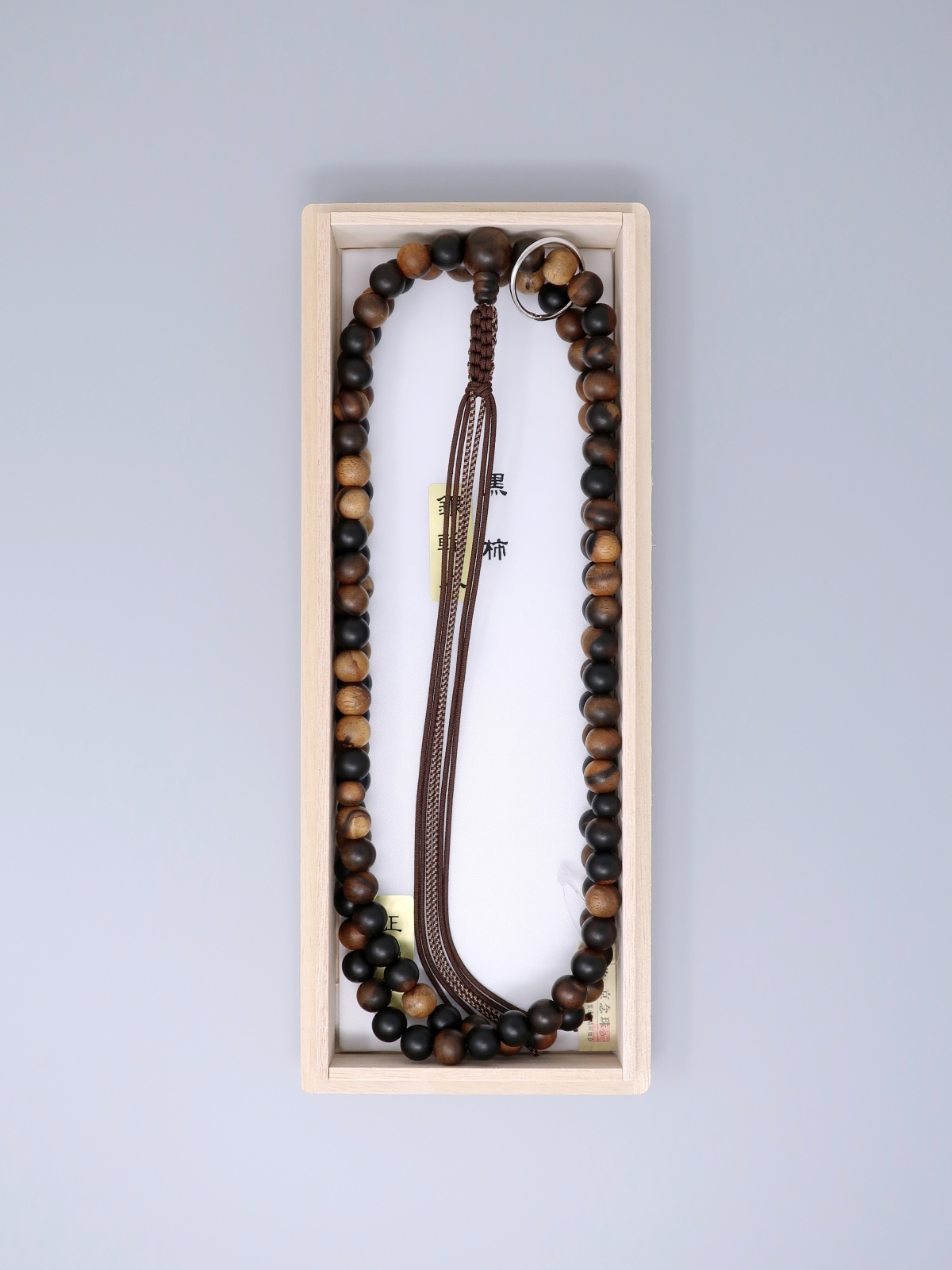 樹齢数百年を越える柿の古木のうち、ごく稀に墨で書いた様な黒色の紋様があらわれることがあります。この紋様があらわれた柿のことをいいます。木材としては硬く、密度が高いため加工が難しい材料です。磨けば磨くほどに滑らかな木肌になり、美しい艶がでます。