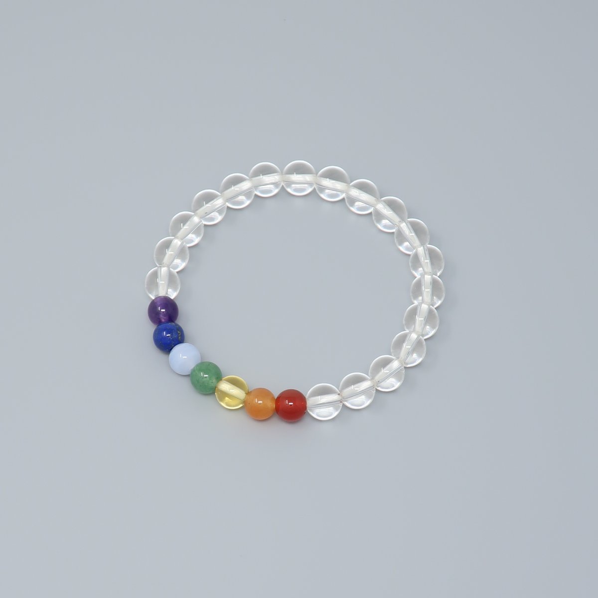 古来より七色は厄除けに良いといわれており、水晶と組み合わせることによって、身に着けるお守りとしておすすめできます。