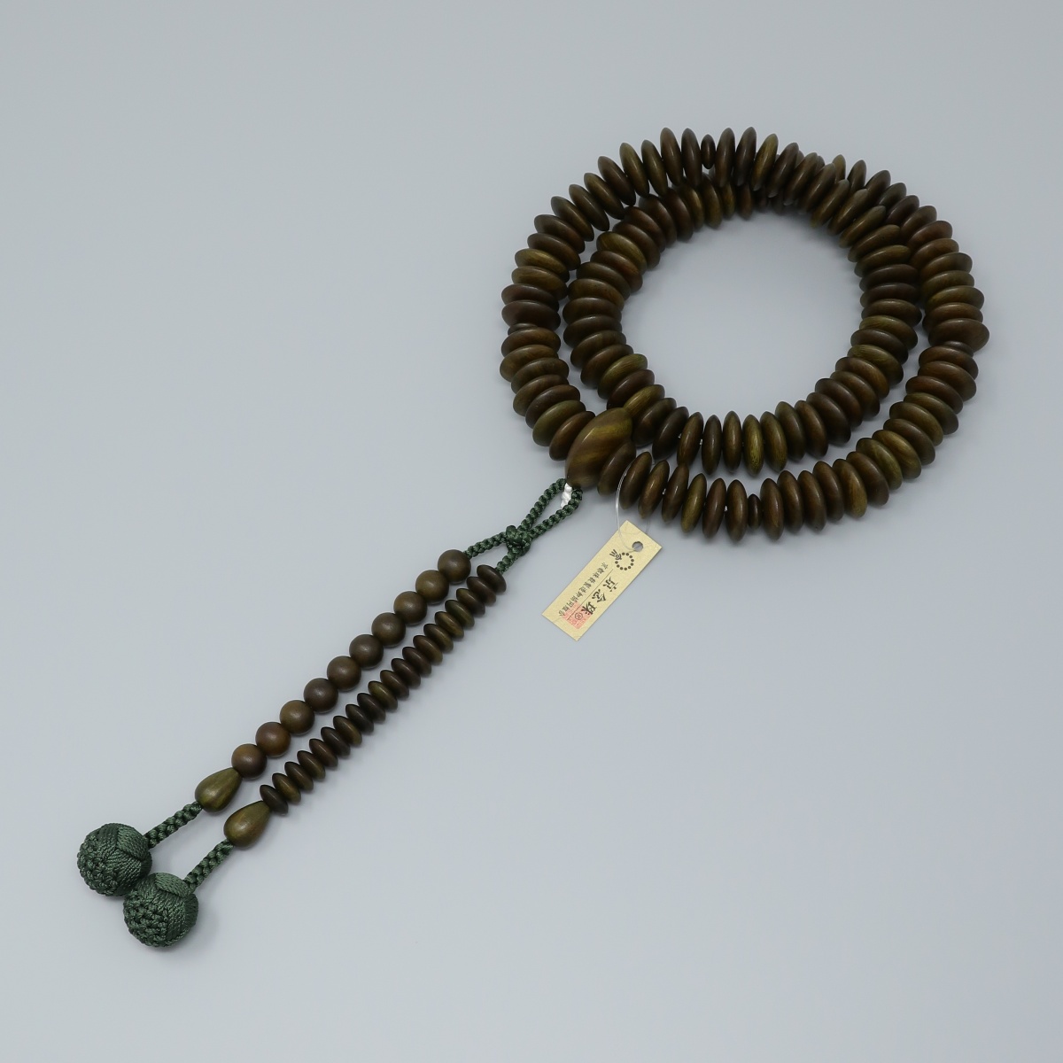 緑檀生命樹(リグナム・バイタ)はラテン語で「生命の木」を意味し、中南米原産の広葉樹です。樹液が万病に効くと欧米でも高価で取引きされていました。黒檀・紫檀と同じく、高級な唐木とされます。硬く丈夫な木材で経年変化により艶が出て赤褐色になります。精神安定、健康、リラックス効果。癒しや安らぎを与える効果があるといわれています。