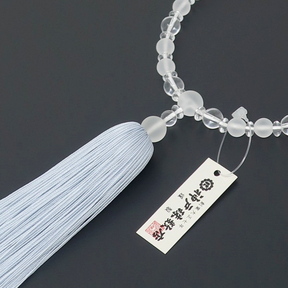 MN-005モダン念珠女性 水晶/朝霧水晶×2/水晶平玉 朝霧水晶珠房アサギ
