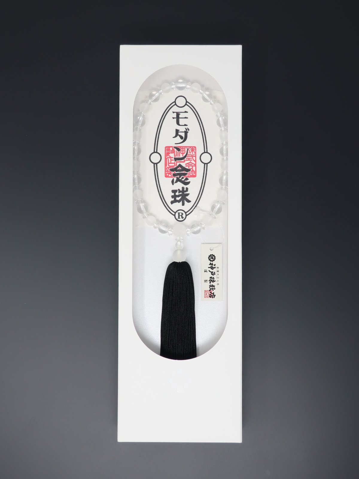 MN-010モダン念珠女性 水晶/朝霧水晶/水晶平玉 朝霧水晶珠房黒